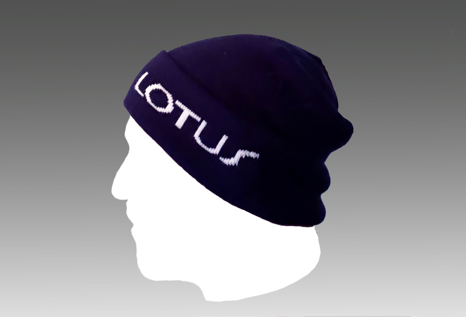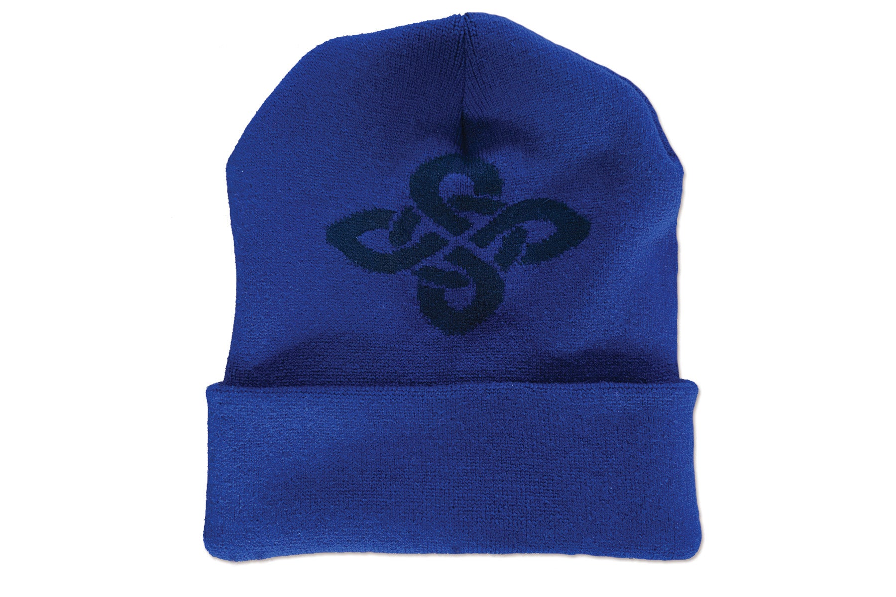 Cuffed knit beanie. "Lotus" embroidered in white on cuff and Celtic Knot Logo embroidered in black on back. Knitted in Pennsylvania by Pearsox.