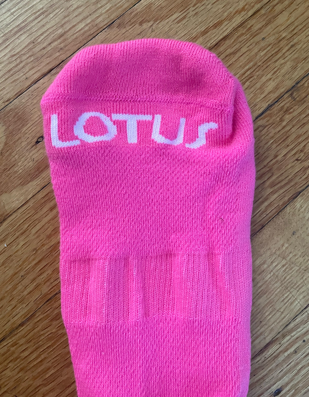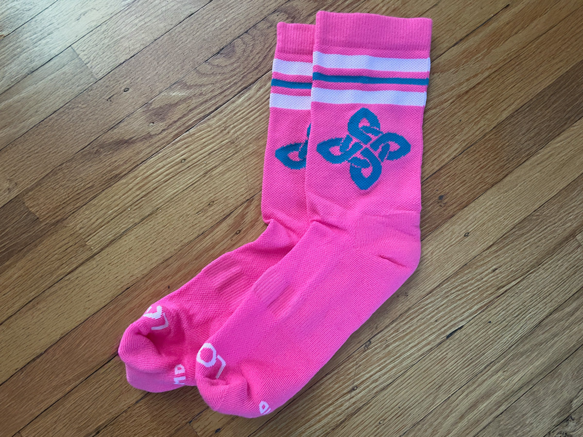 Knit crew socks. Celtic logo on sides, Lotus on toe. High-quality socks with reinforced heel and toe. Blue celtic logo, white/blue stripes, white Lotus